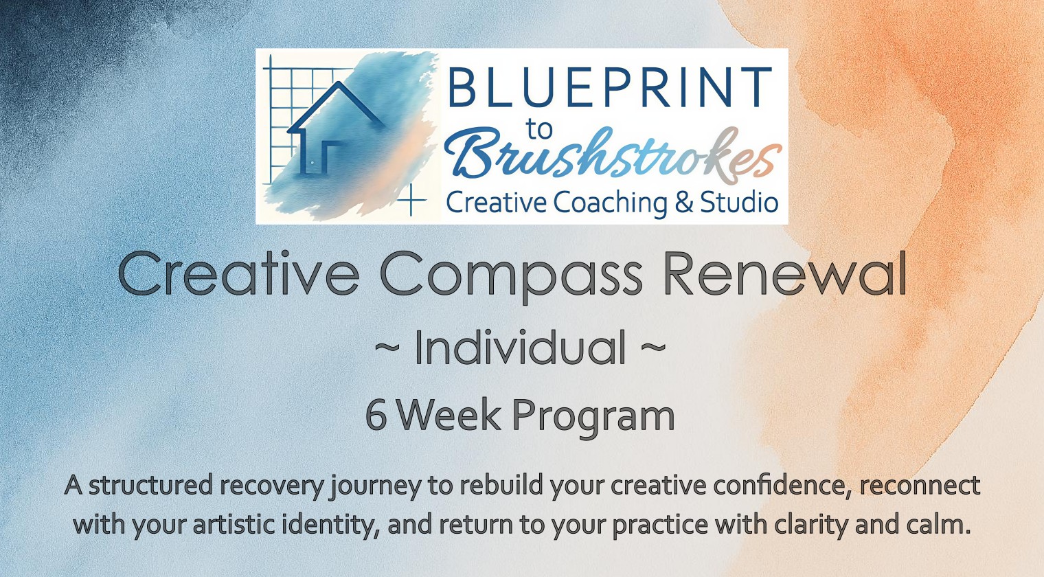 Week 1 — Reconnecting With Your Creative Identity Theme: Foundations of Creative Recovery Map where you are right now, revisit early creative memories, and reconnect with the part of you that still wants — and is ready — to make. Week 2 — Understanding Blocks, Fear & Emotional Overload Theme: Emotional Landscape + Internal Narratives Explore the difference between burnout and creative blocks, examine fear and emotional overload, and begin unpacking the internal narratives shaping your creative experience. Week 3 — Creative Energy & Rhythms (Seasons) Theme: Creative Seasons + Energy Patterns Identify your personal creative cycles and energy patterns — and explore what becomes possible when you release narrowly defined ideas of “consistency.” Week 4 — Restoring Creative Authority Through Small Practices Theme: Agency, Boundaries + Follow‑Through Examine how creative authority is rebuilt through small, intentional practices that strengthen trust, presence, and discernment. Week 5 — Creative Expression & Artistic Voice Theme: Meaning, Discernment + Identity Clarify what feels meaningful in your creative work right now and explore how your artistic voice is shaped by identity, context, and lived experience. Week 6 — Integration, Continuity & Support Pathways Theme: Integration + Next‑Stage Orientation Reflect on what has shifted, identify next areas of attention, and map realistic support pathways for continued recovery and sustainability. ✨ How Each Session Is Structured Each weekly 50–60‑minute session follows a clear, supportive rhythm designed to foster insight, integration, and continuity — not pressure or performance. 1️⃣ Check‑in (10 minutes) We explore what surfaced since the previous session — emotional responses, energy changes, moments of resistance or clarity, and any small developments. 2️⃣ Core Theme + Guided Exploration (20–25 minutes) A structured conversation grounded in the Creative Compass Renewal framework, blending creative psychology, emotional insight, and steady, compassionate inquiry. 3️⃣ Creative Micro‑Practice (10 minutes) A reflective prompt, guiding question, or low‑pressure creative exercise to support orientation and embodiment of the week’s focus. 4️⃣ Integration + Support Plan (5–10 minutes) One small, attainable action or focus point for the week ahead — reinforcing continuity rather than accumulation.